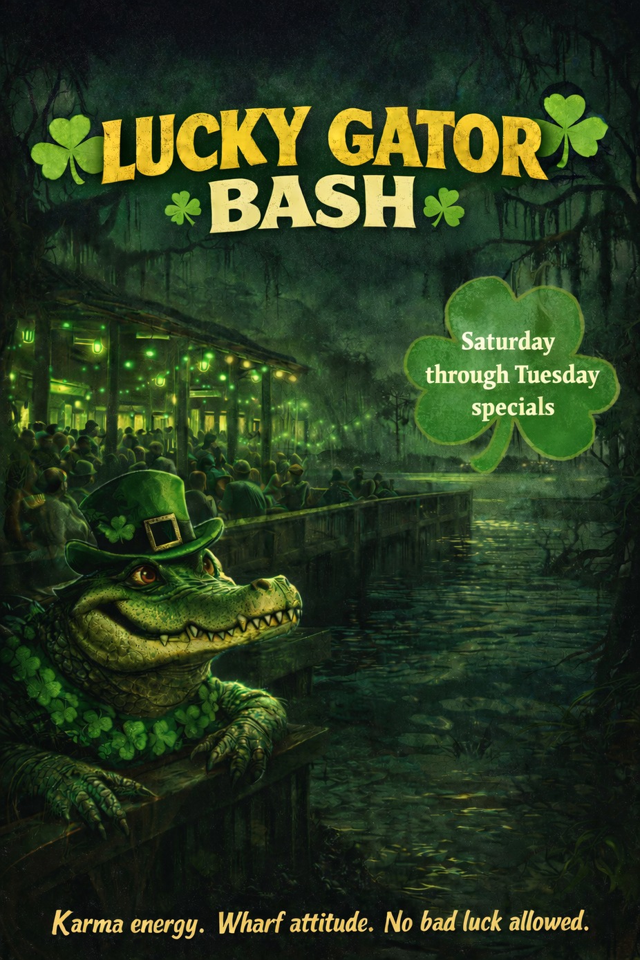 Come hang out, grab a plate, and celebrate a little luck of the gator with us at The Wharf.